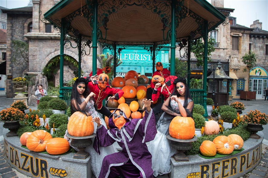 Quảng trường Du Dôme, Làng Pháp, Nhà thờ St Dennis, Beer Plaza,... trong phút chốc như trúng "lời nguyền phép thuật", được bao phủ bởi một màu tím và cam huyền bí, ma mị, bởi sự xuất hiện của hàng ngàn trái bí ngô được tạo hình ngộ nghĩnh vào ban ngày, phát sáng lập lòe khi bóng tối buông xuống, những tấm vải đen kết hợp mặt nạ quỷ kì quái, hình ảnh zombie, phù thủy, xác ướp… Tất cả được đặt khéo léo giữa hệ thống đèn chiếu sáng hiện đại của Sun World Ba Na Hills, hô biến thành phố cổ tích thường thấy trở thành một vương quốc phép thuật vừa kỳ quái, vừa cuốn hút khó cưỡng.