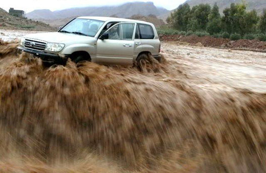 Theo kênh 2M, lượng mưa đo được lên tới 250mm, nước từ các sườn núi đổ xô xuống các đồng bằng bán sa mạc. Hàng chục ngôi nhà bị phá hủy hoàn toàn. Cây cối, đường, cầu cống bị nhấn chìm trong dòng nước lũ. Hàng trăm chiếc xe bị lũ cuốn trôi. Thiệt hại về hoa màu chưa tính được.