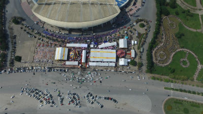 Trong khuôn viên ẩm thực ấm cúng rộng hàng ngàn m2 với mái che kiên cố, cả quảng trường khoảng 20.000 người với những nụ cười và những ly Bia Hà Nội đã lại gần với nhau hơn và dường như không còn khoảng cách. Theo dẫn dắt đầy tươi vui dí dỏm của MC – diễn viên Thành Trung, tất cả thực khách cùng nâng ly và hô “một – hai - ba dzô!” từng đợt rất vang dội. Bên cạnh đó, góp phần khuấy động cho bầu không khí nóng thêm là những màn biểu diễn sôi động của các tay trống, DJ, các ca sĩ nổi tiếng.