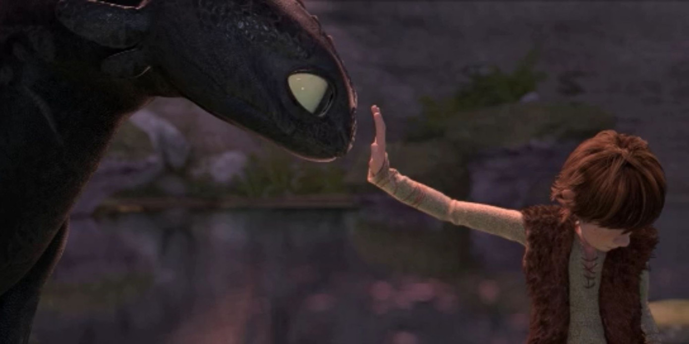 Cảnh phim diễn ra tại một khoảng rừng yên tĩnh, nơi Hiccup đã kiên nhẫn đến gặp Toothless nhiều lần để giành được lòng tin của bé rồng “hay cọc”. Thay vì dùng vũ lực như một Viking điển hình, Hiccup chọn cách thể hiện sự thấu cảm và kiên nhẫn. Trong khoảnh khắc ấy, cậu nhẹ nhàng đưa tay ra, lòng bàn tay mở rộng, và chờ đợi. Toothless do dự, mắt nheo lại, toàn thân căng cứng như một sinh vật hoang dã chưa chắc có thể tin tưởng con người trước mặt. Sau một khoảng lặng dài không lời, Toothless cuối cùng cúi đầu và áp nhẹ chiếc mũi của mình vào lòng bàn tay Hiccup.