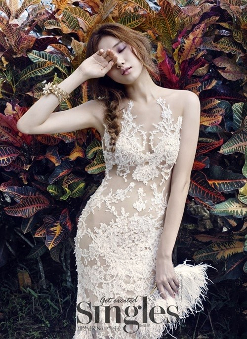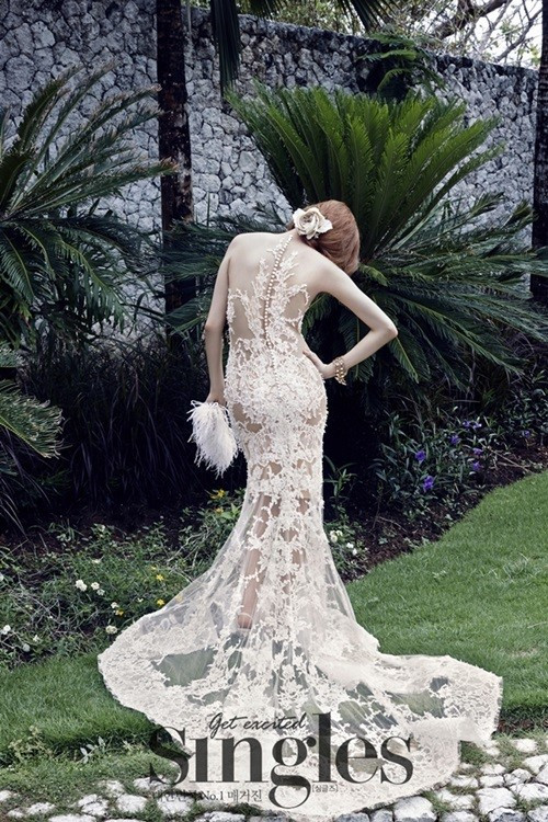 Chiếc váy cưới này được thực hiện bằng kĩ thuật đắp nổi cầu kỳ theo cấu trúc 3D độc đáo trên nền ren trong suốt. Hoạ tiết được đắp cầu kỳ chạy dọc theo đường cong cơ thể.