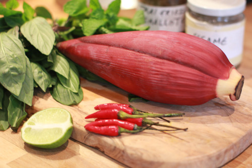 Hoa chuối có hương vị tự nhiên như atiso, dùng được cả phần vỏ bên ngoài lẫn phần lõi bên trong. Trong 100g hoa chuối cung cấp khoảng 51 calo; 1,6g protein; 0,6g chất béo và các chất khác như canxi, phốt pho, sắt, đồng, kali, magiê, vitamin E – là những vi chất có nhiều công dụng đối với sức khỏe.