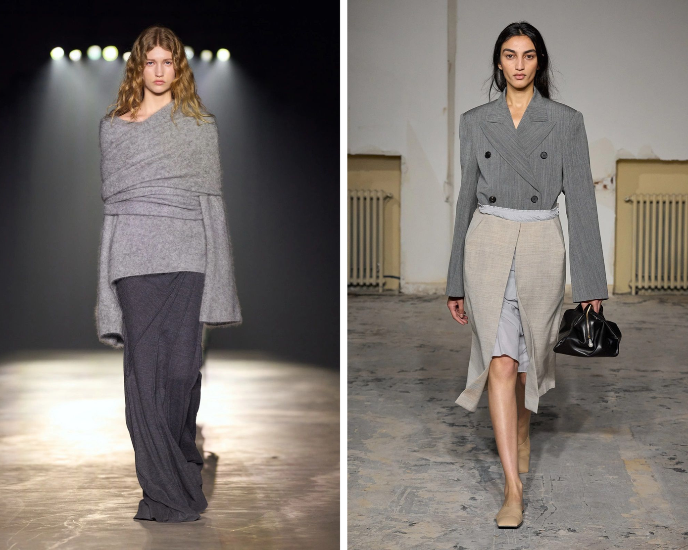 Trong Tuần lễ thời trang Thu Đông, màu xám đã xuất hiện với tất cả các sắc thái và đóng vai trò chủ đạo trong các bộ sưu tập của Jil Sander, Miu Miu, Ferrari, Tom Ford, MaxMara, Michael Kors và nhiều thương hiệu khác. Những bộ trang phục tuyệt đẹp và đáng để học hỏi nhất là các thiết kế của Carven với sự kết hợp các layer màu xám khác nhau.