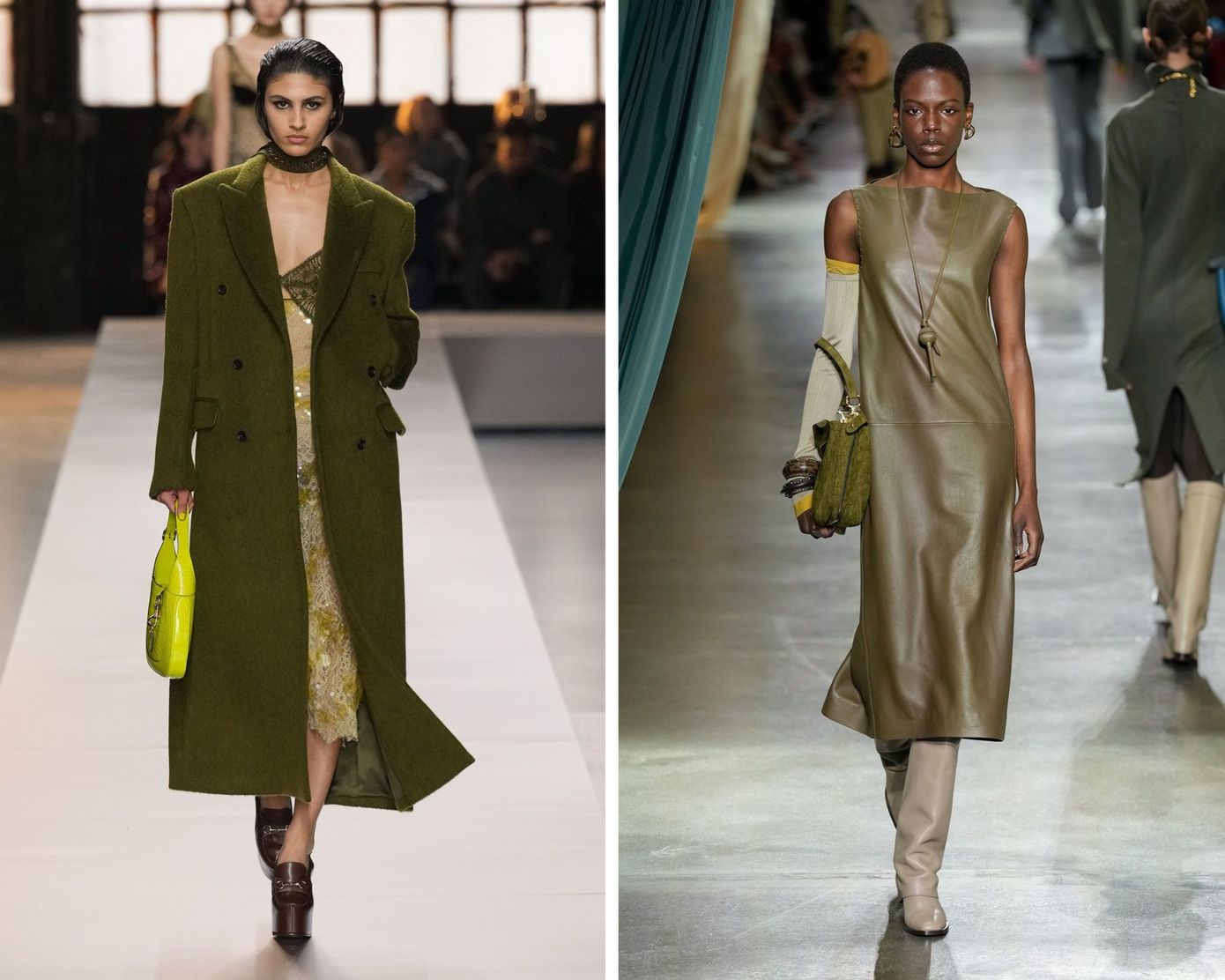 Mùa Thu Đông này, màu xanh ôliu được nhiều thương hiệu như Burberry, Ferragamo, Luisa Spagnoli và Isabel Marant lựa chọn cho các trang phục đơn sắc. Marant sử dụng màu ôliu để thêm phần mạnh mẽ và nghiêm túc vào những thiết kế bohemian và nữ tính của mình. Trong khi Balenciaga và Gucci đã đưa màu này vào các phụ kiện, từ túi xách đến giày dép, thì Louis Vuitton, Burberry và Ferragamo lại tập trung vào những chiếc áo khoác len màu xanh ô liu tinh tế, mang đến một vẻ ngoài vừa đa năng vừa sang trọng.