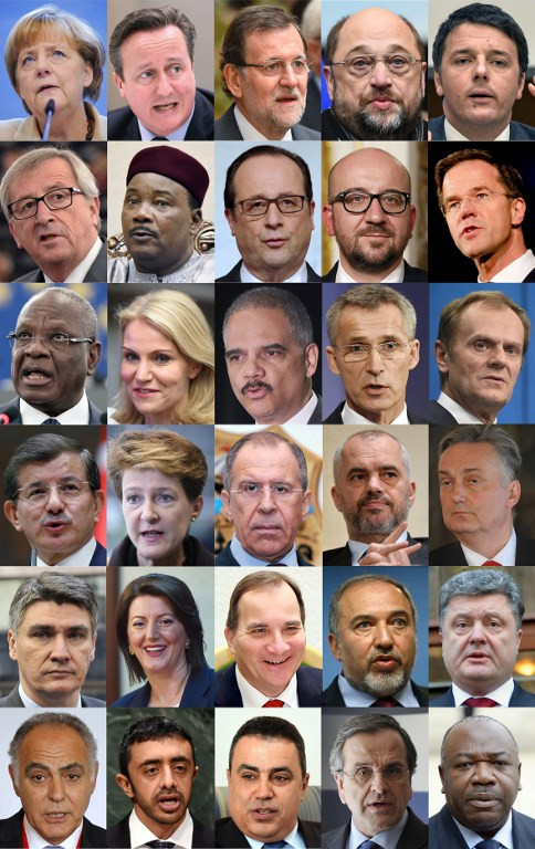 Các nhà lãnh đạo nước ngoài dự kiến sẽ tham dự cuộc tuần hành bao gồm Thủ tướng Anh David Cameron, Thủ tướng Đức Angela Merkel, lãnh đạo Palestine Mahmoud Abbas, Thủ tướng Israel Benjamin Netanyahu... Đây sẽ là hình ảnh biểu tượng cho sự đoàn kết của thế giới trước các vụ thảm sát, tấn công đẫm máu ngày càng gia tăng của các tổ chức khủng bố.