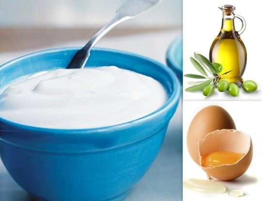 Ngoài ra, rụng tóc theo mùa cũng có thể được giảm thiều nhờ những loại mặt nạ tự nhiên sau: Oliu + sữa chua + trứng gà. Trứng gà, sữa chua và dầu oliu chứa nhiều chất như kẽm, sắt, magie... cùng các loại vitamin khác. Các chất này có tác dụng hiệu quả trong việc mang lại mái tóc suôn mềm, khỏe mạnh từ bên trong. Lưu ý là bạn nên mua dầu oliu loại extra bởi nó sẽ giàu dưỡng chất hơn các loại khác.