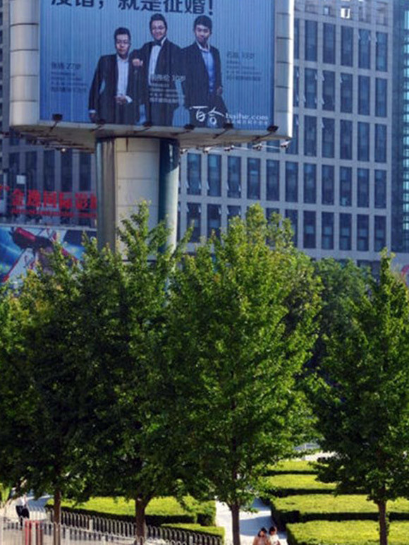 Khu trung tâm thương mại Trung Quan Thôn, Bắc Kinh, Trung Quốc từng xôn xao bởi tấm biển quảng cáo cỡ lớn với hình ảnh của 3 anh chàng lịch thiệp. Tấm biển lạ lùng này được dựng lên nhằm mục đích tuyển vợ cho 3 chàng trai thành đạt đã ở tuổi 30 mà chưa tìm được ý trung nhân.