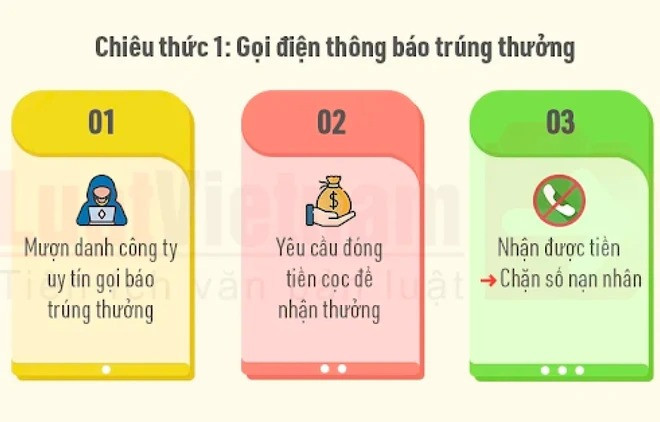 Lừa đảo chiếm đoạt thông qua hình thức "nhận quà trúng thưởng" là một chiêu trò không còn mới. Các đối tượng thường liên hệ với nạn nhân thông qua hình thức gọi điện thông báo trúng thưởng và thường sẽ thiên biến theo nhiều cách thức khác nhau như: Gọi điện thông báo trúng thưởng, mua hàng để nhận mã trúng thưởng, nhắn tin trúng thưởng qua Facebook.