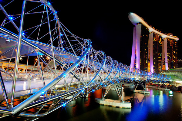 Helix Bridge là chiếc cầu có cấu trúc xoắn kép đầu tiên trên thế giới được khánh thành vào năm 2010, cây cầu đã trở thành một trong những địa điểm tham quan nổi tiếng ở Singapore. Cây cầu dài 3,5 km, gồm hai khung thép hình cung nối lại với nhau theo quan niệm âm-dương của người Á Đông, được cho là sẽ mang đến phú quý, hạnh phúc, sự trù phú cho Marina Bay.