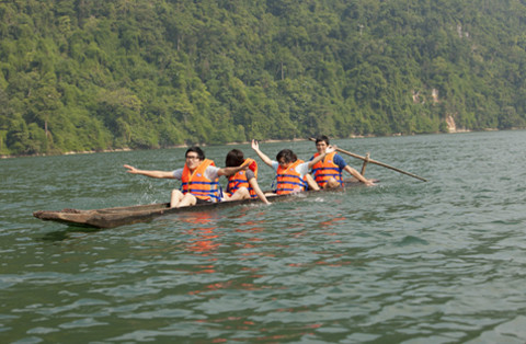 Toạ lạc giữa một vùng núi đá vôi rộng lớn, hồ Ba Bể mang vẻ đẹp hoang sơ và thơ mộng với không khí mát lạnh, dễ chịu cùng sắc xanh choáng ngợp. Bạn có thể tự mình chèo thuyền độc mộc ngao du khắp ngõ ngách.