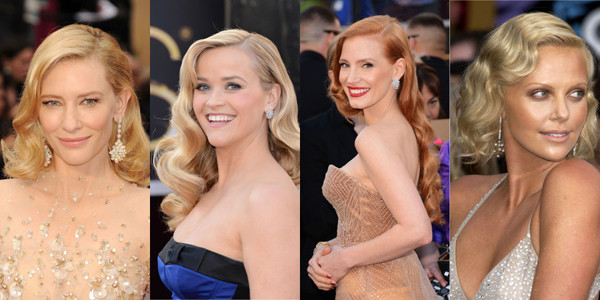 Tóc xoăn lọn retro là "mẫu số chung" của nhiều người đẹp tóc vàng tại Oscar. Style tóc gợi cảm, quyến rũ này rất hợp với những chiếc đầm trần vai hay xẻ ngực sâu.