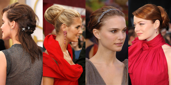 Tóc búi luôn là lựa chọn hàng đầu cho những sự kiện trang trọng như Oscar. Ngoài những kiểu búi gọn cổ điển như Emma Stone, Natalie Portan và Heidi Klum, các người đẹp trẻ tuổi như Emma Watson thường chọn style bới tóc với nhiều biến tấu lạ mắt hơn.