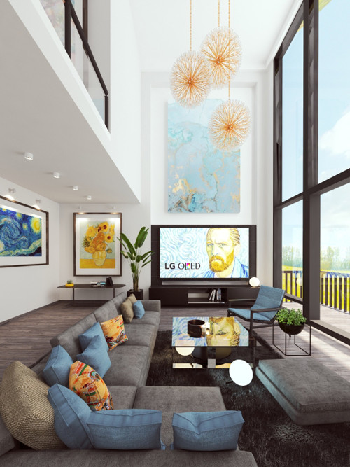 Theo kiến trúc sư Lê Tú Anh và Vũ Lệnh Việt Cường, tranh treo tường khổ lớn là món đồ trang trí không thể thiếu, nếu muốn không gian phòng khách vừa sang trọng lại có dấu ấn riêng.