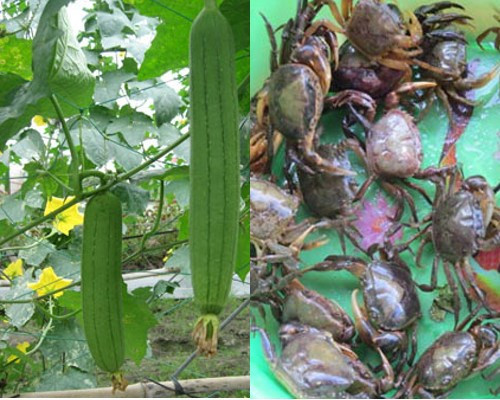 Canh cua hoa mướp. Nếu đã chán với canh cua rau đay, mướp mồng tơi, mướp rau dền... thì hãy thử canh cua hoa mướp nhé. Vị bùi bùi giòn giòn của nụ hoa kết hợp với cua cũng rất dễ ăn. Cua làm sạch cho vào xay nhuyễn và lọc lấy nước. Ảnh: phunutoday