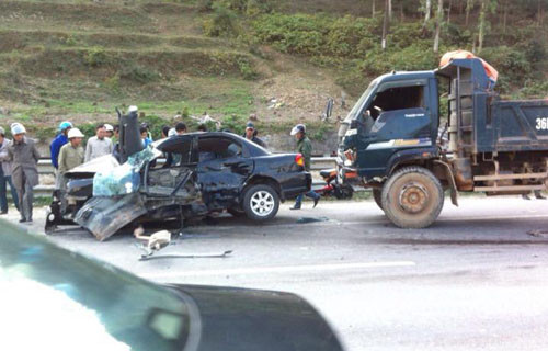 Do chạy tốc độ cao, chiếc xe bắn ngược trở lại, chắn ngang đường. Cùng thời điểm đó, một ô tô tải (biển số Thanh Hóa) chạy cùng chiều lao tới tiếp tục đâm vào xe gặp nạn. Cú va chạm mạnh khiến chiếc xe 4 chỗ bị đẩy xa thêm nhiều mét.