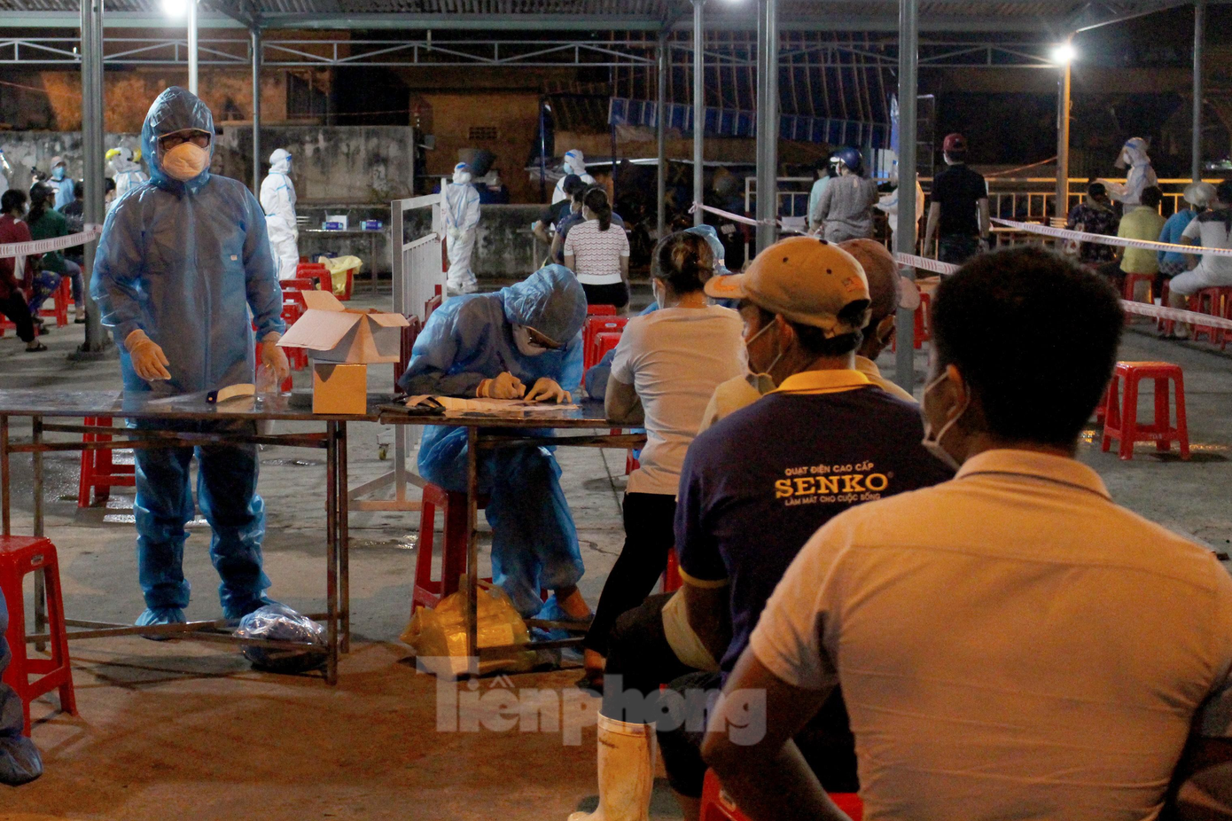 Đây là lần thứ 3 lực lượng chức năng tiến hành lấy mẫu tại cảng cá Thọ Quang. Trong ảnh, ngườu dân đến lấy mẫu tại cảng cá đêm 14/5. Ảnh: Giang Thanh.