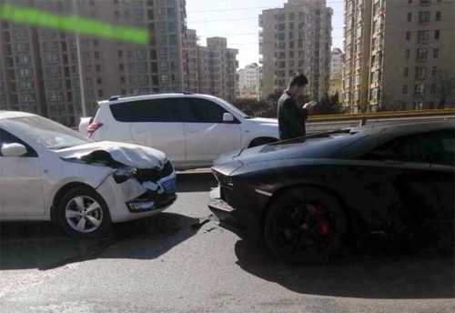 Tai nạn thứ tư xảy ra tại thành phố Côn Minh, tỉnh Vân Nam. Một chiếc Skoda Octavia đâm vào đuôi siêu xe Lamborghini Aventador trên cao tốc.