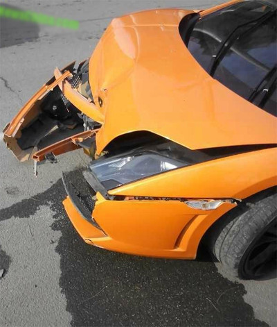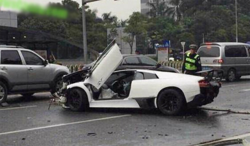Trong số 5 chiếc gặp nạn, trường hợp của Murcielago màu trắng dường như nặng nhất. Tài xế mất lái trên đường ướt, đuôi xe bị văng và đầu xe đâm vào dải phân cách giữa đường. Các túi khí đều bật, cả tài xế và người đi cùng đều bị thương tuy nhiên may mắn không bị đe dọa tới tính mạng.