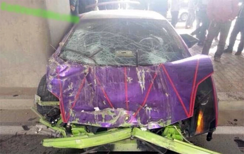 Chiếc thứ 3 gặp nạn là Gallardo LP570-4 màu tím với các đường trang trí phong cách Tron. Siêu xe đâm vào một chiếc taxi rồi va vào một bức tường bê tông tại thành phố Thạch Gia Trang, tỉnh Hà Bắc.