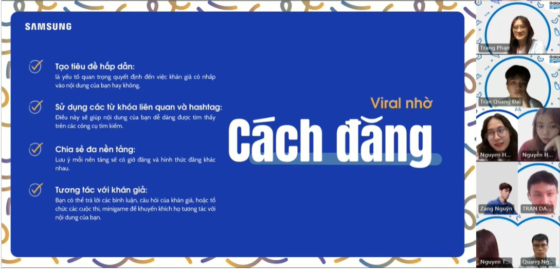 Không chỉ được chia sẻ kiến thức bổ ích, các bạn trẻ Galaxy Campus Friends đã được thực hành và tự mình xây dựng nên những nội dung chất lượng trên các nền tảng MXH thực tế.