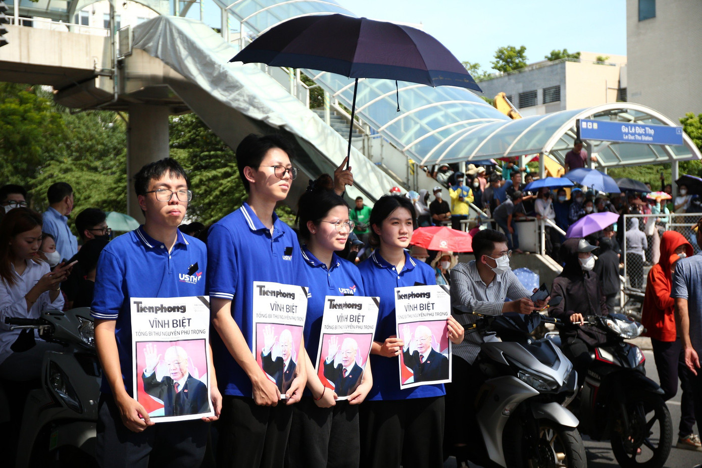 Dư Thị Cẩm Tú - Sinh viên ngành Công nghệ sinh học – Phát triển thuốc - tham gia phát tặng báo tại địa điểm gần Nghĩa trang Mai Dịch cho biết: “Hôm nay là một ngày đặc biệt trong cuộc đời sinh viên của mình khi được cùng các bạn sinh viên Trường Đại học Khoa học và Công nghệ Hà Nội (USTH) tham gia vào một hoạt động vô cùng ý nghĩa. Mình rất xúc động khi xem những hình ảnh trong số báo Tiền Phong đặc biệt về Tổng Bí thư Nguyễn Phú Trọng và cảm thấy thật vinh dự, tự hào được phát tặng số báo đặc biệt này đến những người dân đứng hai bên đường chờ đưa tiễn bác về nơi an nghỉ cuối cùng”.