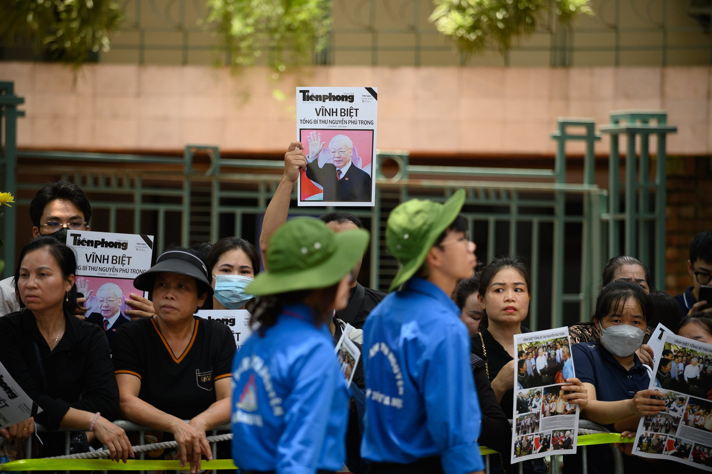 Trong chiều ngày 26/7, báo Tiền Phong đã phát tặng hàng nghìn số báo đặc biệt về Tổng Bí thư Nguyễn Phú Trọng đến người dân có mặt tại một số điểm trên đường có đoàn xe đưa linh cữu Tổng Bí thư đi qua.