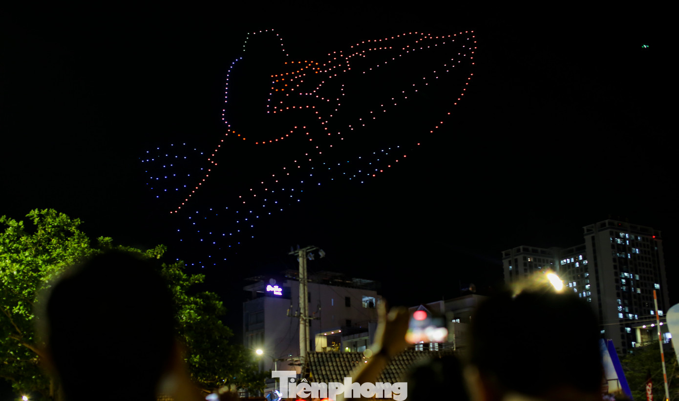 Kết thúc lễ bế mạc, người dân cùng du khách được chiêm ngưỡng những màn trình diễn ánh sáng đầy nghệ thuật trên bầu trời đêm Quy Nhơn, từ 500 thiết bị bay công nghệ (drone) lập trình tạo ra.