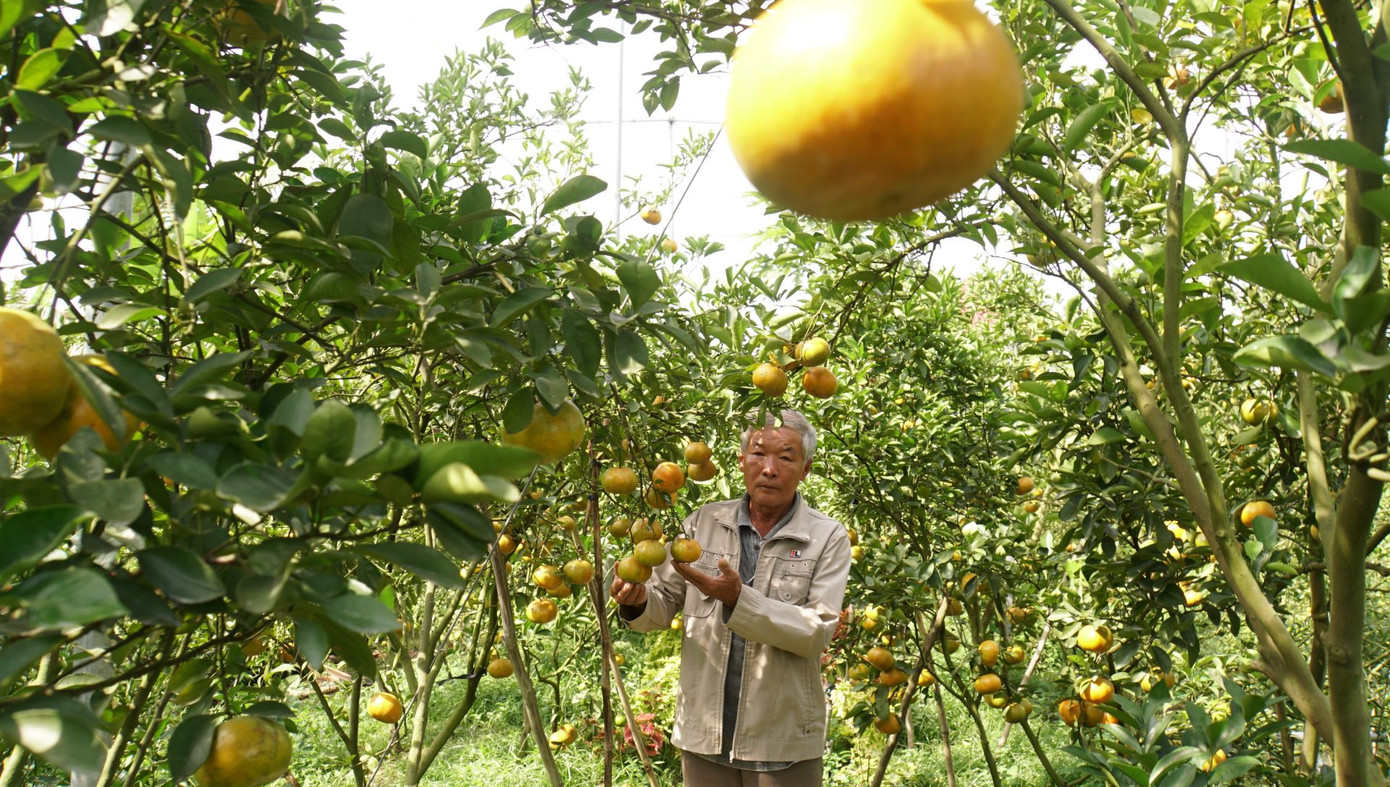 | Ông Nguyễn Văn Đầy, chủ nhiệm Long Hậu Hội quán ở ấp Long Hưng 1, xã Long Hậu có 1 ha trồng cây ăn trái, trong đó đang cho trái 0,5 ha quýt hồng. Hiện tại vườn của ông trái vàng rực, dự kiến sản lượng trên 20 tấn vừa phục vụ khách tham quan và thị trường tết. Ảnh: Hòa Hội |