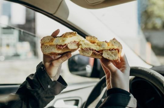 Ăn uống là cách nhanh nhất để tạo nên mớ hỗ độn và ám mùi trong chiếc xe của chúng ta. Tùy thuộc vào người bạn đi cùng, bạn có thể hướng dẫn mọi người không ăn uống trên xe. Nếu thời tiết hoặc tuyến đường không cho phép chúng ta có thể ăn bên ngoài hoặc bạn đang đi du lịch với trẻ em, ít nhất nên hạn chế các loại thực phẩm khô, không chứa chứa nước, sốt,... để tránh rơi vãi khi đang ăn.