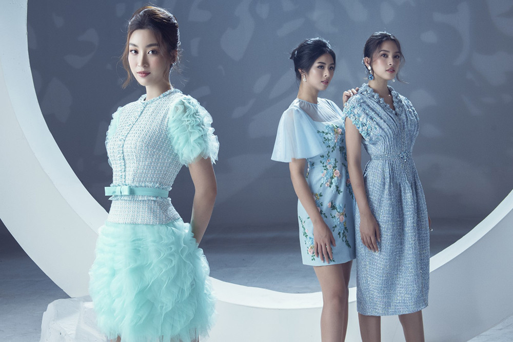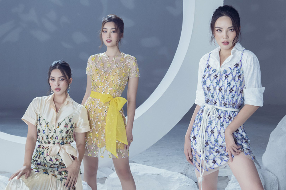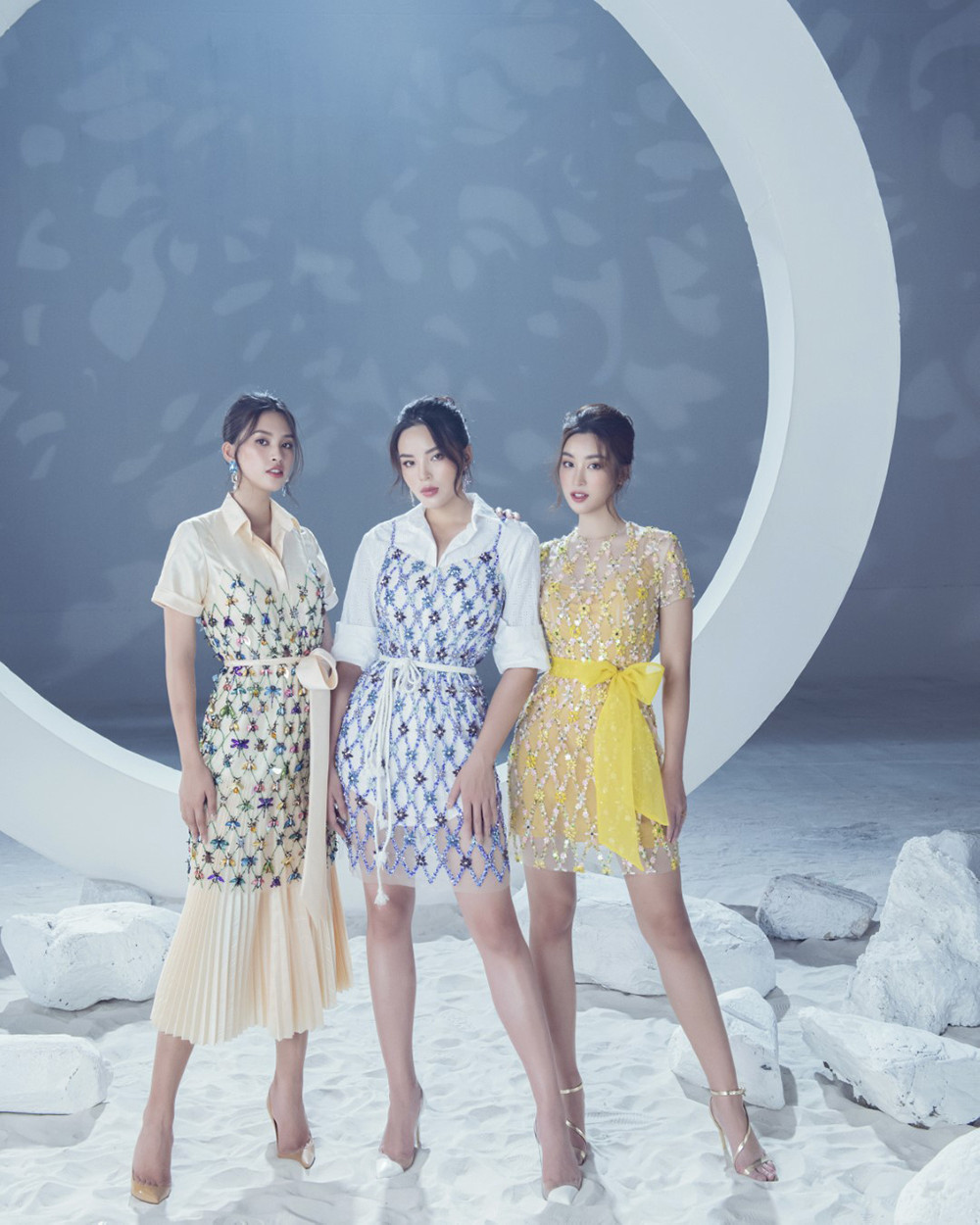 Trong khi bộ ba Mai Phương Thúy, Kỳ Duyên, Tiểu Vy khoe vẻ gợi cảm trong các mẫu đầm váy với tông màu nóng, phom dáng ấn tượng thì, Ngọc Hân, Đỗ Mỹ Linh, Lương Thùy Linh diện những bộ cánh thanh thoát, nhẹ nhàng hơn.