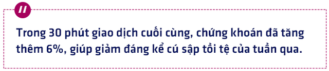 Trong 30 phút giao dịch cuối cùng, chứng khoán đã tăng thêm 6%, giúp giảm đáng kể cú sập tồi tệ của tuần qua. Lợi suất trái phiếu kho bạc 10 năm tiệm cận mức 1% trong khi giá dầu tăng 4,1%.