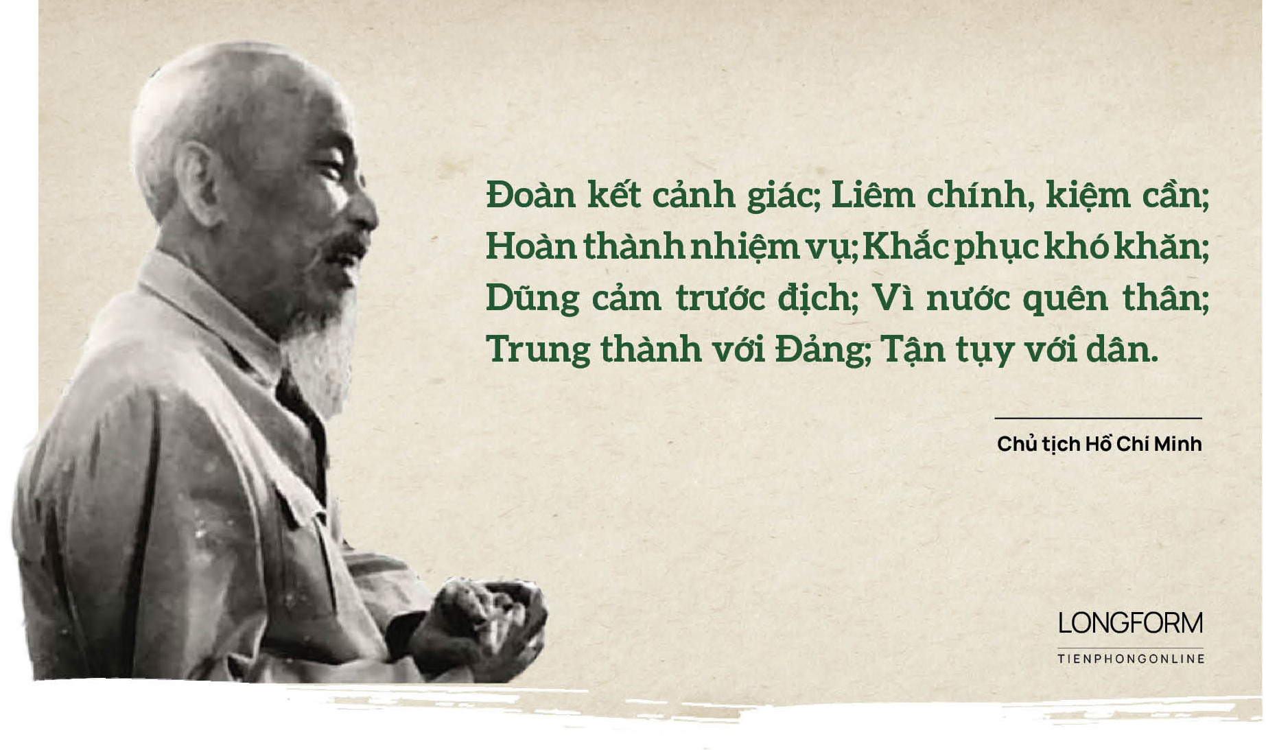 Tại buổi lễ thành lập ngày 28/3/1959, Chủ tịch Hồ Chí Minh đã tới dự và huấn thị: “Đoàn kết cảnh giác; Liêm chính, kiệm cần; Hoàn thành nhiệm vụ; Khắc phục khó khăn; Dũng cảm trước địch; Vì nước quên thân; Trung thành với Đảng; Tận tụy với dân”.