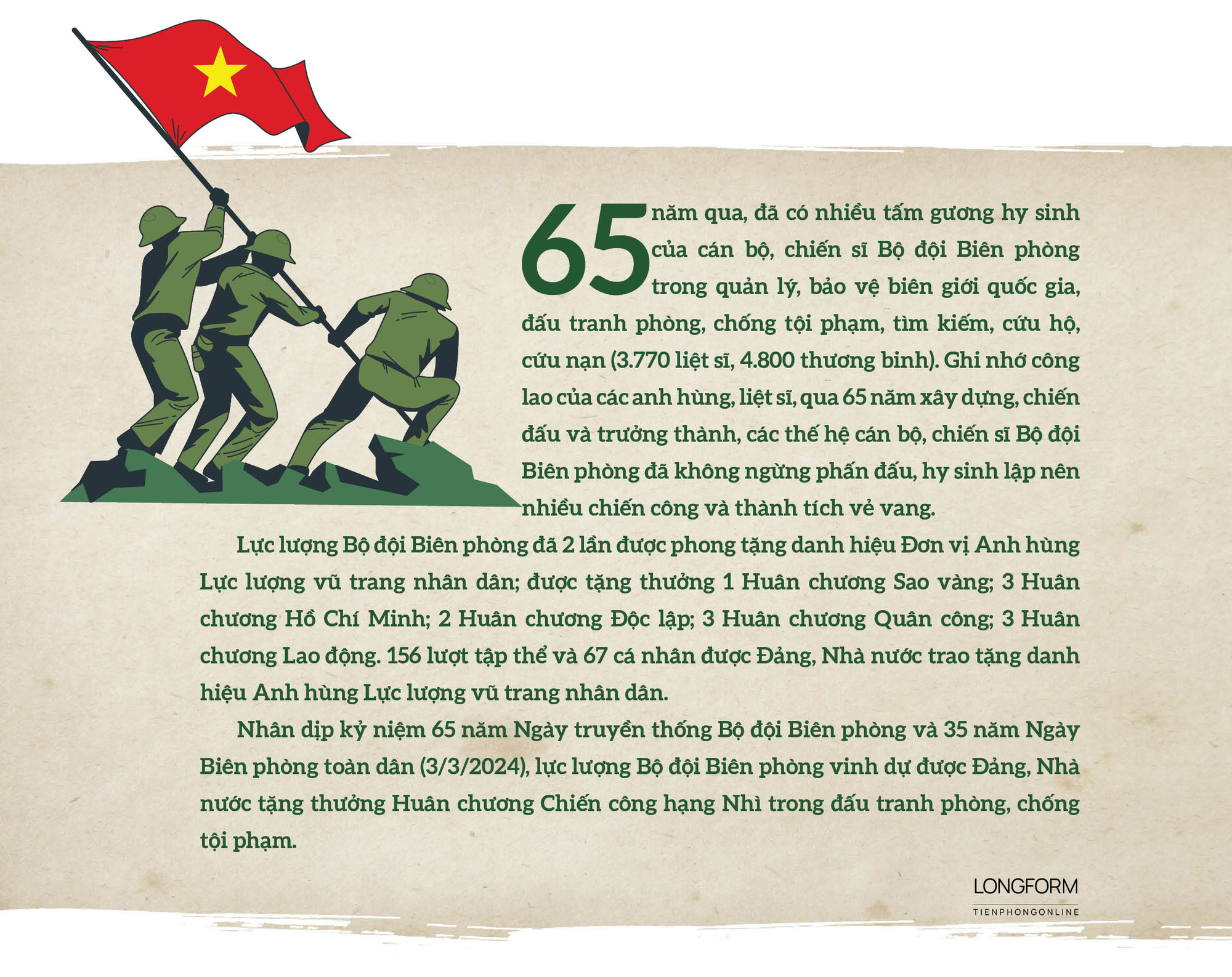 | Bộ đội Biên phòng bảo vệ vững chắc chủ quyền quốc gia và xây dựng biên giới hòa bình, hữu nghị. Nguồn video: Điện ảnh Biên phòng |