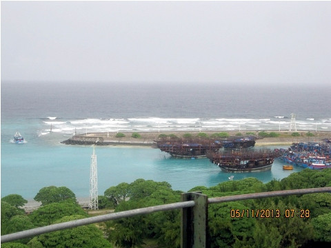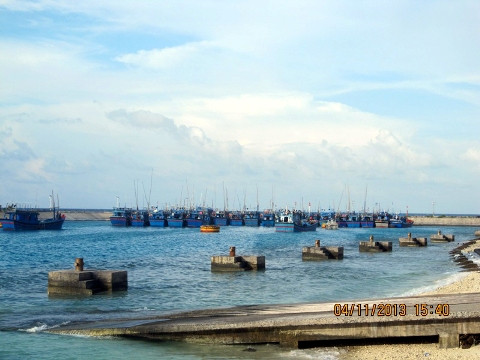 Hình ảnh tàu cá neo đậu tránh bão trong âu tàu đảo Song Tử Tây (ảnh: Nguyễn Văn Dũng):