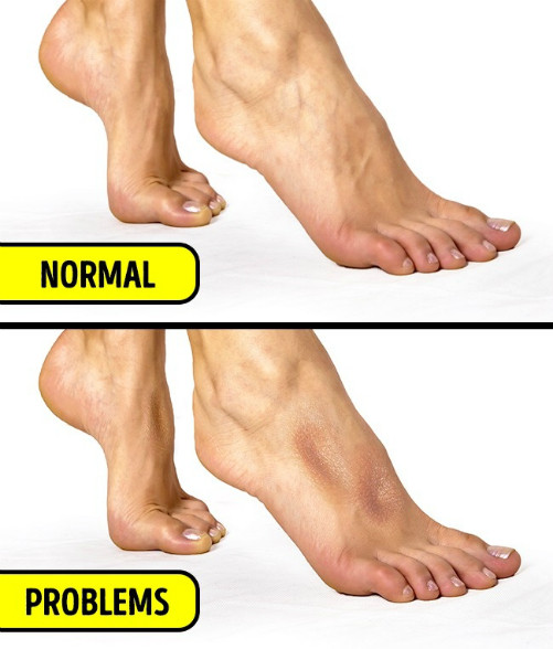 Nhấn bàn chân xuống sàn hoặc dùng ngón tay cái ấn xuống chân, nếu thấy vết lõm trên bàn chân không đàn hồi về như lúc đầu thì có khả năng bạn đang bị trữ nước. Bạn nên giảm lượng muối trong chế độ ăn uống và tránh các sản phẩm chế biến sẵn.