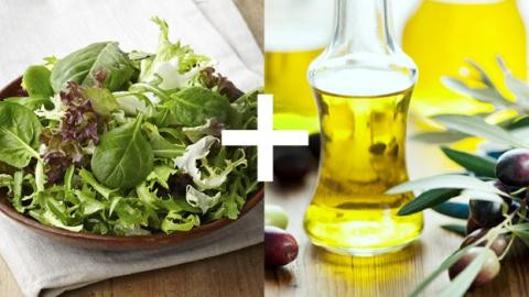 Rau xanh và dầu olive - (Vitamin K và chất béo lành mạnh)