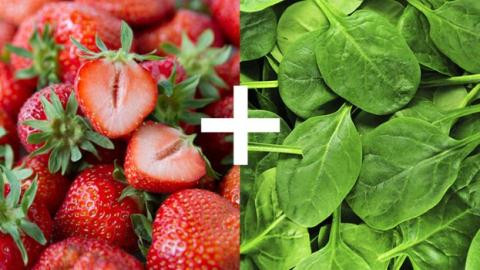 Hãy thử làm món salad đầy màu sắc với rau bina giàu chất sắt và dâu tây thái lát giàu vitamin C. Hoặc một gợi ý khác là: bông cải xanh kết hợp với ớt chuông; đậu xanh với cà chua…