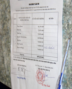 Hai thanh niên nhận tiền bồi thường đầu tiên là Khâu Sóc và Trần Văn Đỡ, cùng huyện Trần Đề. Trong đó Khâu Sóc được bồi thường trên 72 triệu đồng, Trần Văn Đỡ được nhận trên 74 triệu. Cả hai được trừ mỗi người 20 triệu đồng tạm ứng trước đây.