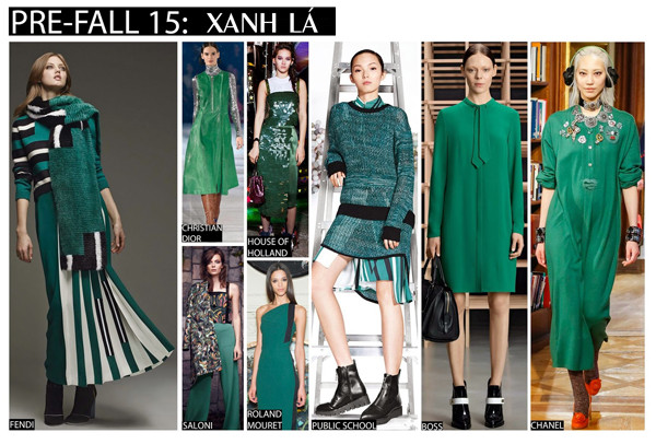 Nếu như ở mùa xuân hè, sắc xanh lá ở cấp độ tươi sáng hay xanh ánh vàng chinh phục các nhà thiết kế thì giờ là thời điểm lên ngôi của xanh cẩm thạch và ngọc lục bảo. Điều này khẳng định những gam màu đá quý luôn được ưa chuộng trong thời tiết se lạnh. Sắc màu tối và đậm hơn so với mùa trước nhưng toát lên vẻ sang trọng, quý phái. Hugo Boss, Chanel, Fendi, Dior... đều không đứng ngoài trào lưu này.
