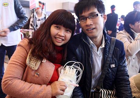 Cặp đôi Mai Tuấn Minh và Vũ Thị Kim Liên là một trong số 700 cặp tham gia ngày hội hiến máu