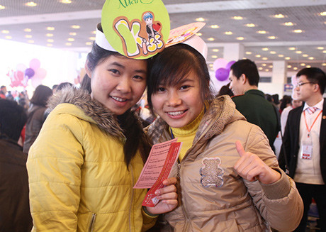 Hà Trung Nghĩa, SV ĐH Bách Khoa và Phạm Thị Bích Ngọc, SV ĐH Ngoại thương tham gia "Hiến giọt máu đào, trao niềm hi vọng". Hai bạn rất vui khi được các tình nguyện viên tặng cặp mũ đội đầu đáng yêu