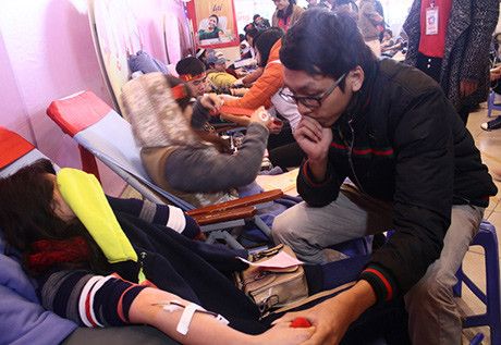 Hôm qua 16/2, hàng ngàn người đã tham gia lễ hội hiến máu tình nguyện lớn nhất trong mùa xuân tại SVĐ Mỹ Đình, Hà Nội. Sự kiện đặc biệt này mang tên Lễ hội Xuân hồng 2014 do Viện Huyết học – truyền máu trung ương phối hợp với Hội Thanh niên vận động hiến máu tổ chức.