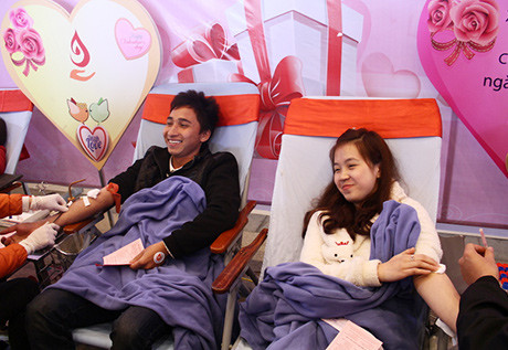 Hoạt động hiến máu đôi, hay còn gọi là hiến máu “tình nhân” đã nhận được sự ủng hộ nồng nhiệt của các bạn trẻ. Khi ngày Valentine chỉ vừa qua đi, các cặp tình nhân trẻ tuổi lại có dịp thể hiện tình yêu song hành cùng nghĩa cử hiến máu cứu người.