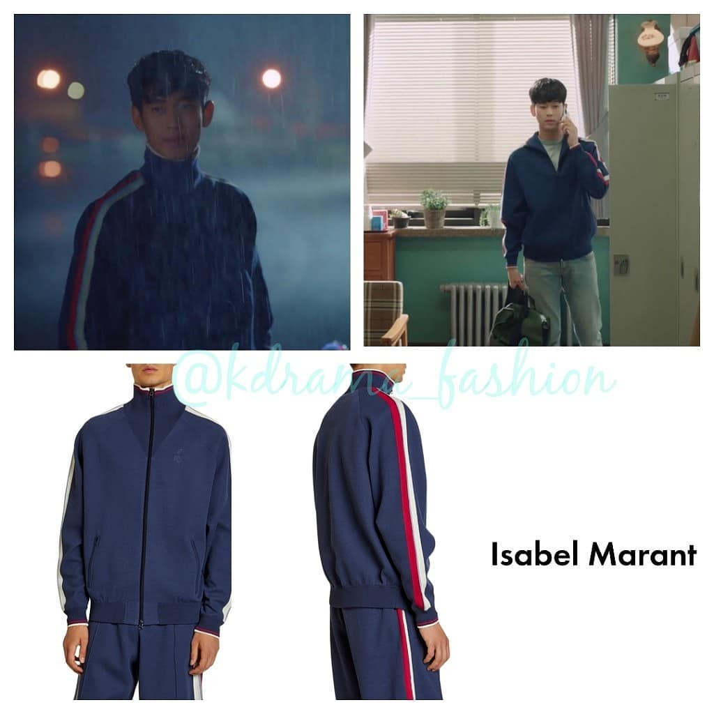 Chiếc áo khoác cô khoác bên ngoài là của nam chính Moon Gang Tae (Kim Soo Hyun đóng) khoác cho, chiếc áo của hãng Isabel Marant có giá 12 triệu đồng, cô khoác bên ngoài chiếc váy trắng dài và trông vẫn rất xinh đẹp.