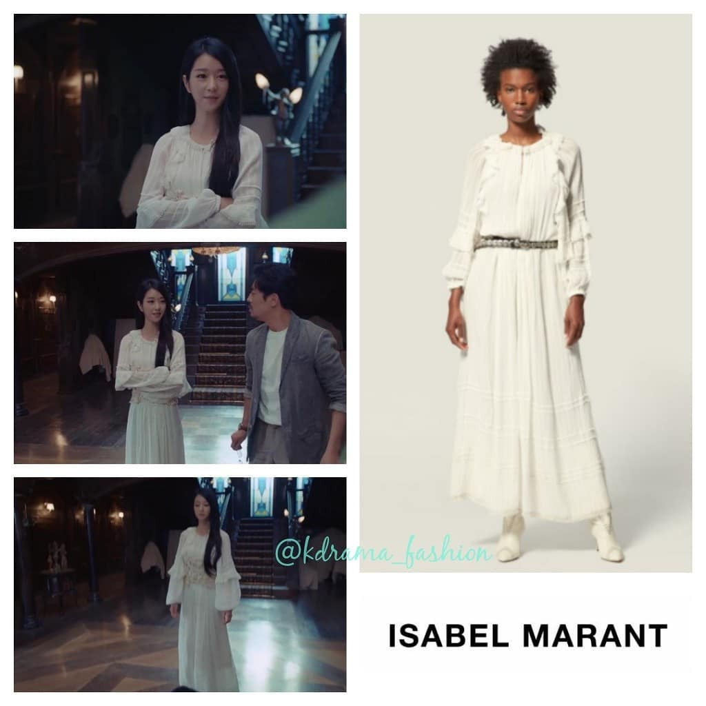 Một bộ váy trắng rất xinh khác được nhân vật Ku Mun Yeong diện trong tập 6, chiếc váy trắng dài của Isabel Marant có giá hơn 17 triệu đồng.