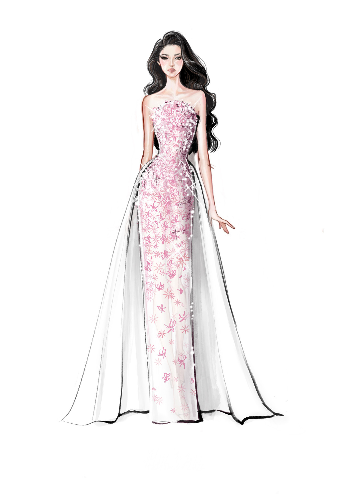 Điểm nhấn đặc biệt trong các thiết kế lần này là những họa tiết hoa anh đào mang đậm nét văn hóa truyền thống của Nhật Bản – quốc gia đăng cai cuộc thi, vừa thể hiện sự giao thoa tinh tế giữa hai nền văn hóa Việt – Nhật.