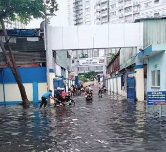 Ngày 10/5, hình ảnh nhân viên bảo vệ của Đại học Nguyễn Tất Thành (cơ sở quận 7, TP.HCM) quần áo ướt sũng, lao xuống đẩy xe cho sinh viên khiến người xem cảm thấy ấm lòng. Thu Hiền - người ghi lại khoảnh khắc này - cho Zing.vn hay cô muốn mọi người có cái nhìn khác về sự cống hiến thầm lặng của những người hàng ngày gắn bó với mái trường, với học trò. Ảnh: Thu Hiền.