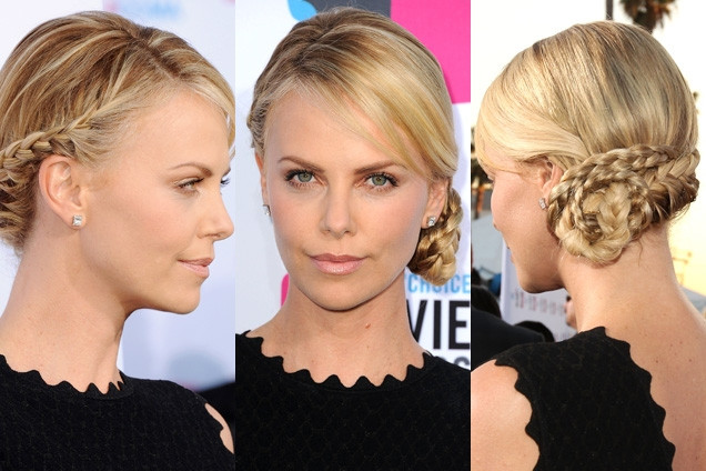 Charlize Theron với kiểu tóc kết hợp giữa tết và búi.