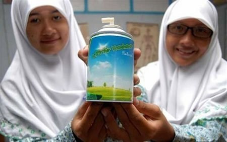 Nước hoa xịt phòng làm từ phân bò. Hai nữ sinh Indonesia, Dwi Nailul Izzah và Rintya Aprianti Miki đã vượt qua hơn 1.000 đối thủ để giành huy chương vàng trong lễ trao giải dự án khoa học Olympic quốc gia với phát minh nước hoa xịt phòng làm hoàn toàn từ... phân bò.