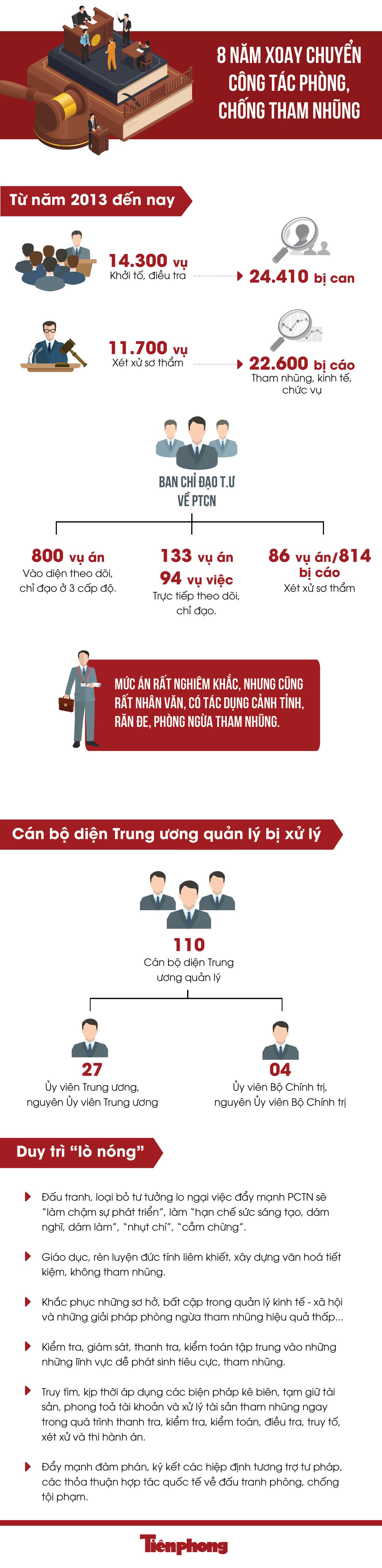 TPO - Tháng 2/2013, Ban Chỉ đạo Trung ương về phòng, chống tham nhũng được thành lập do Tổng Bí thư, Chủ tịch nước làm Trưởng Ban. Kể từ đó đến nay, công tác PCTN đã có những chuyển biến tích cực, “không còn vùng cấm, không có ngoại lệ, bất kể người đó là ai”.